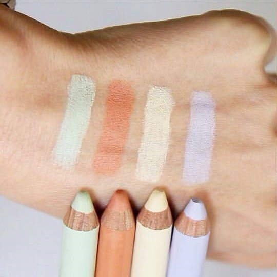 Πράσινο: εξουδετερώνει την ερυθρότητα, όπως ευρυαγγείες, κοκκινίλες του ερεθισμένου δέρματος και της ροδόχρου ακμής. Vegan.