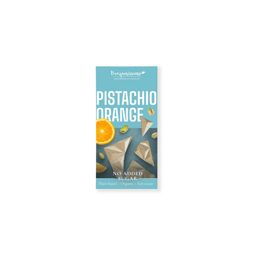 Σοκολάτα χωρίς ζάχαρη με Φιστίκι Αιγίνης και άρωμα Πορτοκάλι 60gr Benjamissimo