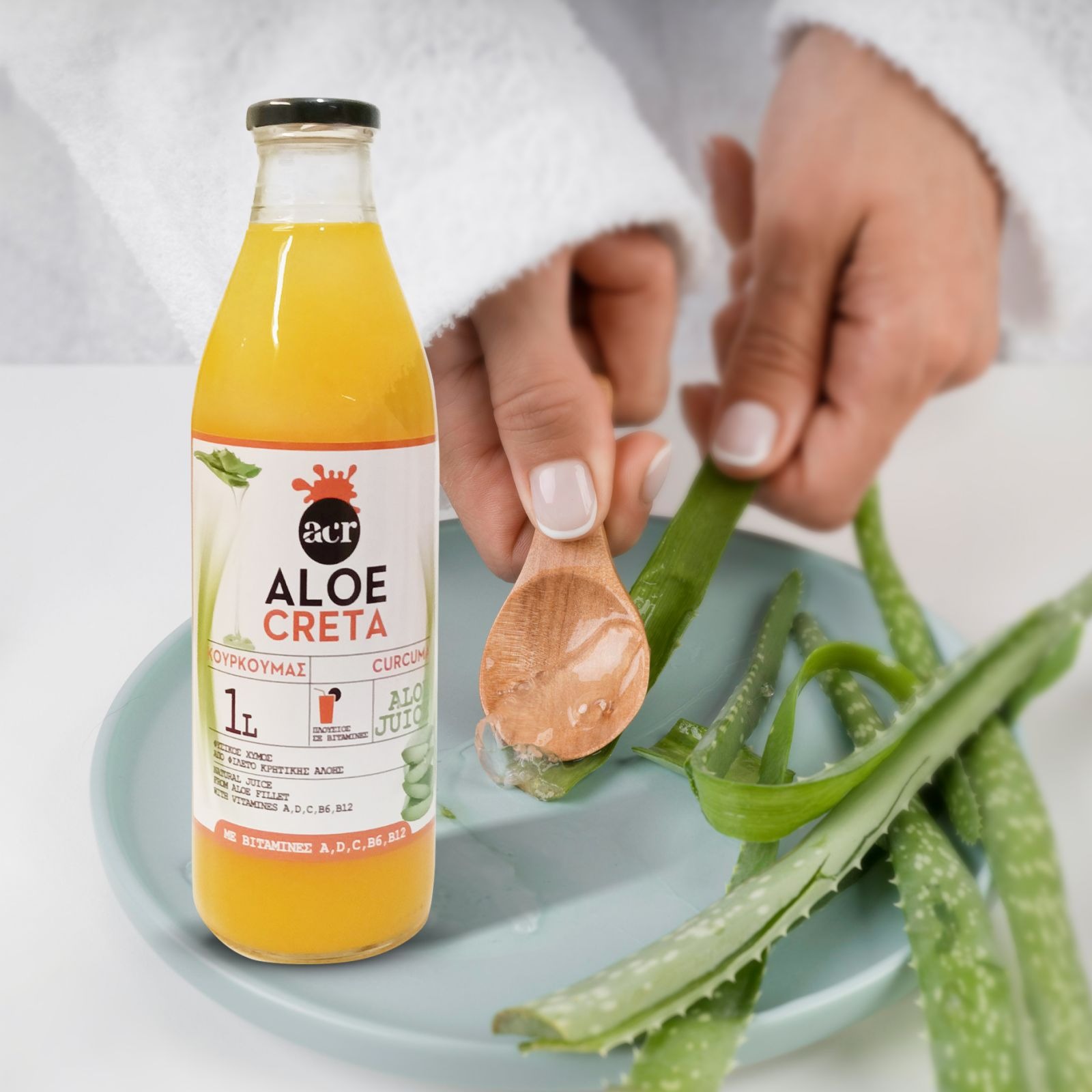 Φυσικός Χυμός Αλόης με κουρκουμά από τζέλ κρητικής αλόης 1lt ALOE CRETA