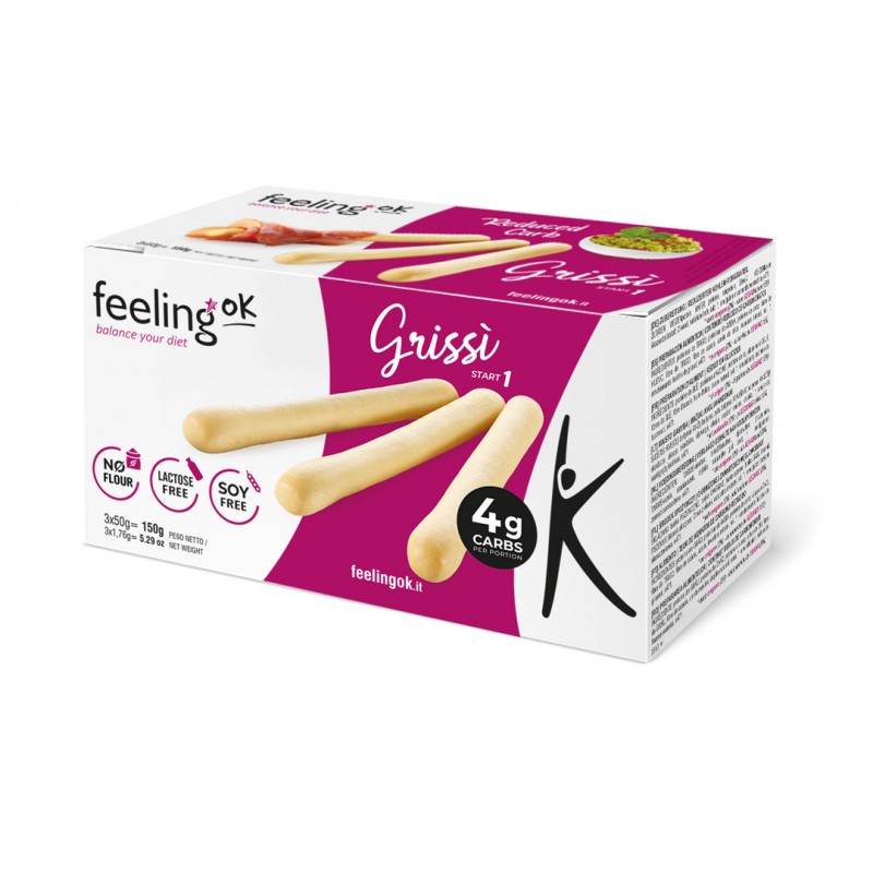 •  Πρωτεϊνικά Κριτσίνια χωρίς υδατάνθρακες 150gr FeelingOk (3x50g)