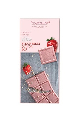 Βιολογική Λευκή σοκολάτα με Φράουλες, Τραγανούς Κόκκους Κινόα 70gr BENJAMISSIMO