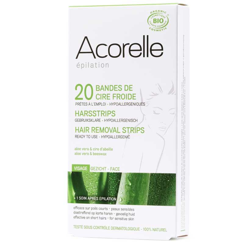 Βιολογικό κρύο κερί αποτρίχωσης προσώπου, 20 ταινίες ACORELLE ORGANIC