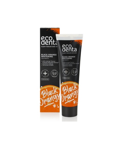 Η Ecodenta έχει δημιουργήσει για εσάς τη νέα vegan μαύρη οδοντόκρεμα λεύκανσης με άνθρακα και πορτοκάλι, χωρίς φθόριο. Λευκαίνει αποτελεσματικά τα δόντια, καταπολεμά την πλάκα και χαρίζει μοναδική φρεσκάδα και μία ευχάριστη γεύση πορτοκαλιού.