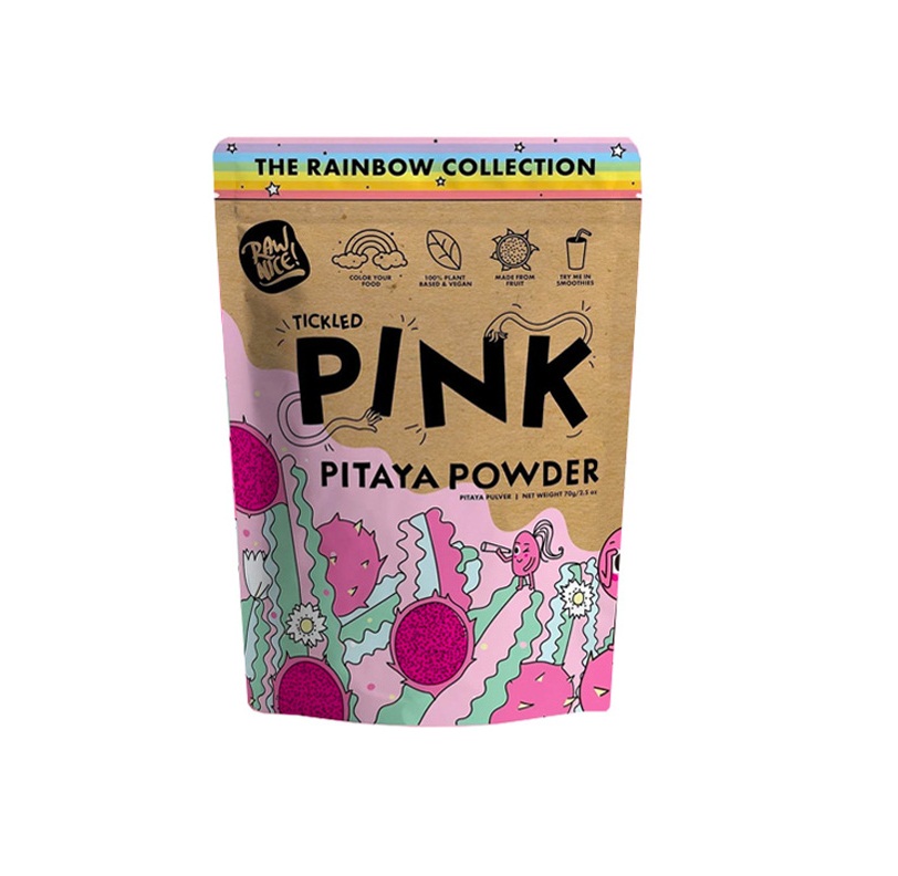 Τίποτα δεν θα είναι ποτέ ίδιο με αυτό το εκπληκτικό ροζ χρώμα στην κουζίνα σας! Η ροζ πιτάγια σε σκόνη προέρχεται από το τροπικό φρούτο του «δράκου» με τη διαδικασία ψυχρής έκθλιψης. Αποτελεί το πρώτο προϊόν της σειράς Υπερτροφών «Ουράνιου Τόξου» της Rawnice και αγαπήθηκε όσο κανένα άλλο! Ο λόγος είναι απλός και η απόλαυση είναι εγγυημένη! Μεταμορφώνει σε δευτερόλεπτα κάθε συνταγή, διασκεδάζει μικρούς και μεγάλους, αλλά κυρίως προσφέρει φουλ αντιοξειδωτικά και βιταμίνες. Και το καλύτερο; Δεν περιέχει καθόλου ζάχαρη, χρωστικές και πρόσθετα.